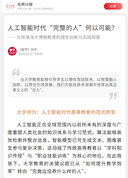 “当大学教育能够引导学生以德性驾驭技术、以智慧融入创新、以责任引领发展,我们方能在技术浪潮中培育出真正意义上的“全人”。”