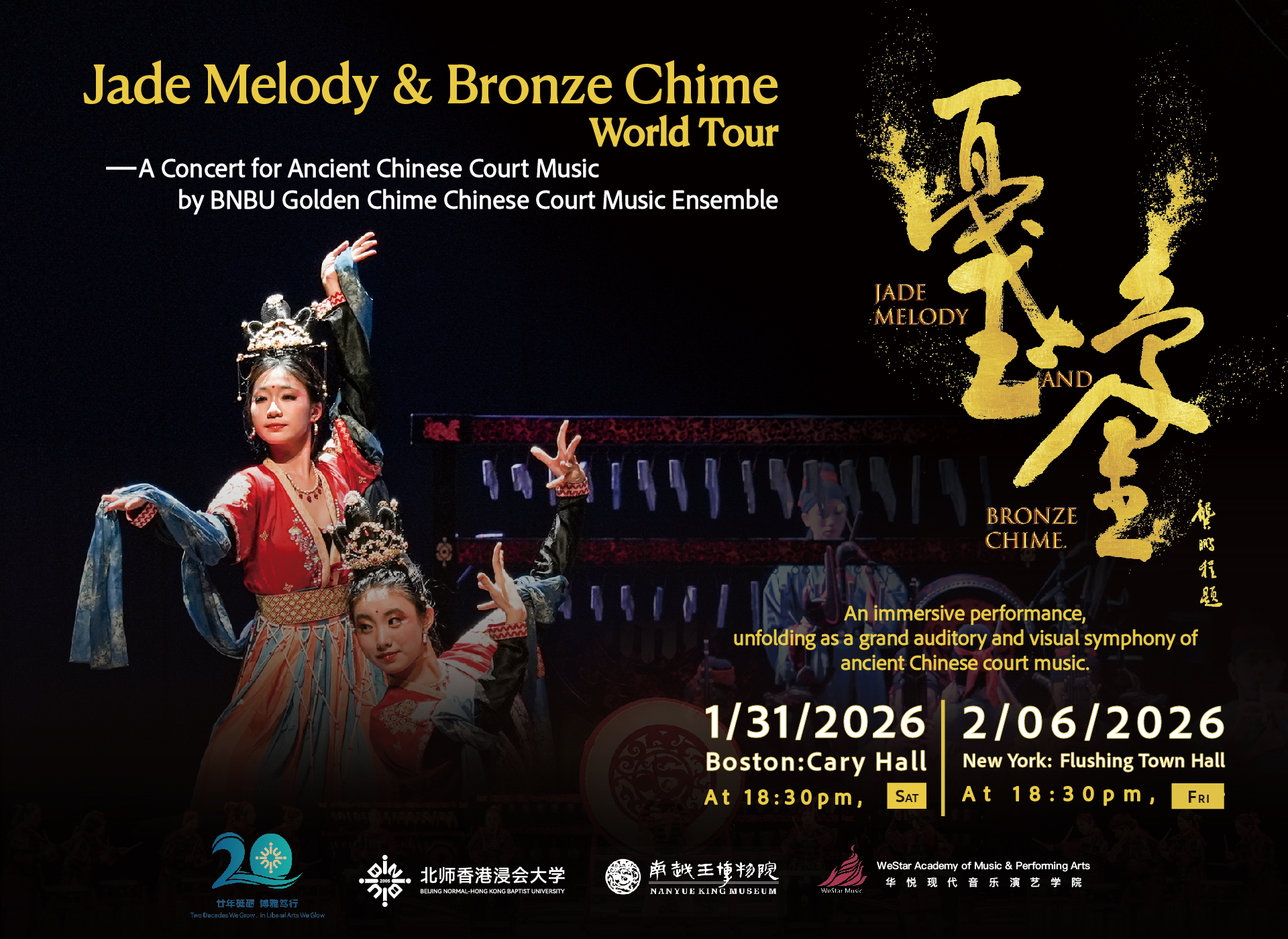 波士顿时间2026年1月31日晚,当青铜编钟的第一个悠长音符在波士顿莱克星顿卡里厅(Cary Hall)的穹顶下缓缓铺开时,历史的回响在这一刻完成了奇妙的交汇。